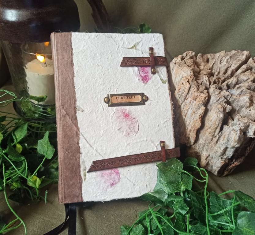 Chaque feuille est unique, portant les traces de sa transformation artisanale. La texture et l’épaisseur et la couleur peuvent varier légèrement ajoutant au charme authentique de ce carnet